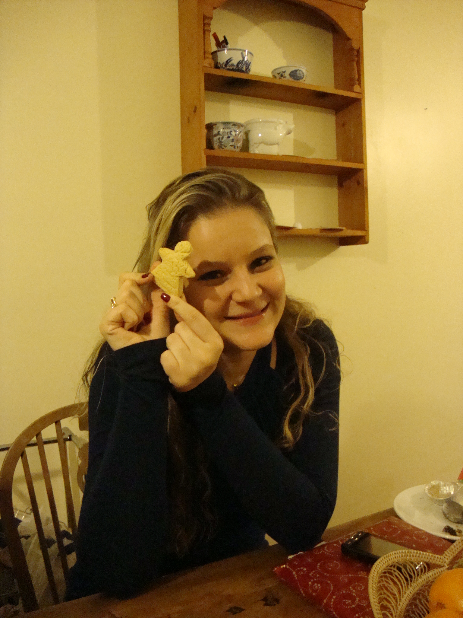 After calling it a day at the café, my Christmas Eve dinner was among dear friends from Poland, Italy and Colombia. We ate traditional food from our home countries (e.g. pierogi, from Poland, and tiramisù, from Italy), exchanged lovely presents and pulled Christmas crackers, wearing the golden hats that were inside for the rest of the evening.