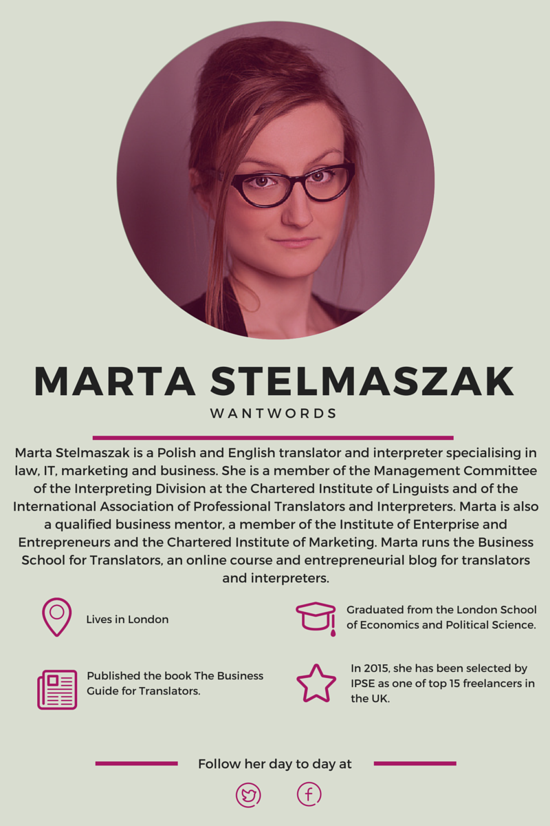 Tanya Quintieri is a ProZ Community awarded mentor and German/English translator based in the Czech Republic. She’s the initiator of the 1,000,000 Miles Challenge, the Be The Change initiative, contributing member of The Language Mastermind and The Translation Mastermind, and a mother to three beautiful children. She loves Corsica and Salsa, dislikes online bullies and low quality food, and enjoys networking both online and offline. For more information about her,